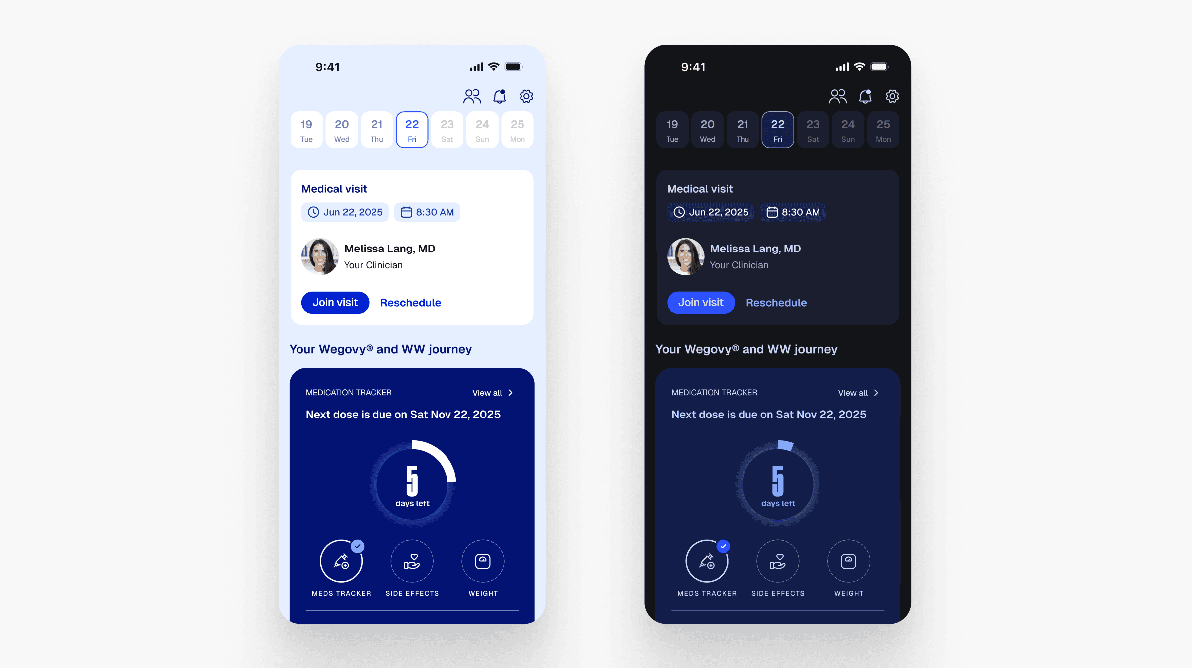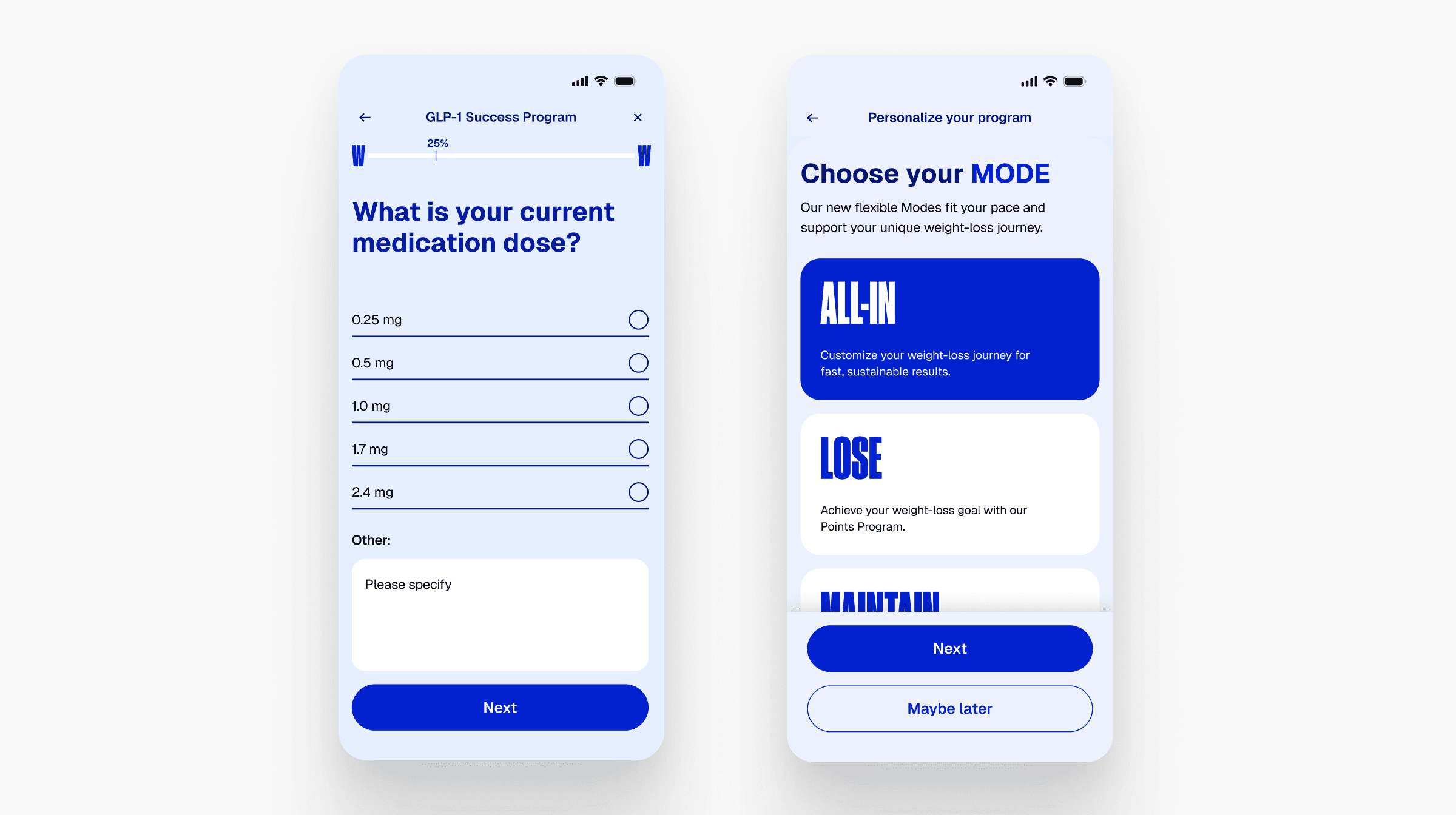 WW's move into medical weight loss, including GLP-1 medication support, added a layer of complexity the app wasn't designed for. The product now needed to serve users with very different goals: some tracking Points like they always had, others managing medication schedules and side effects. The existing app struggled to hold all of that together.